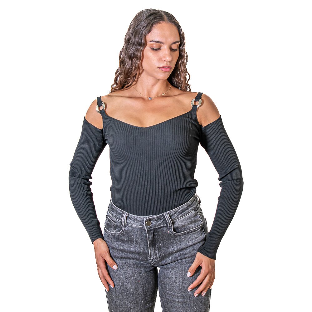 Το τοπ Elle ξεχωρίζει για τη μοντέρνα και εκλεπτυσμένη σχεδίασή του, με εντυπωσιακές αλυσίδες στους ώμους που προσδίδουν στυλ και φινέτσα. Το υψηλής ποιότητας ύφασμα προσφέρει άνεση και κομψή εφαρμογή, καθιστώντας το ιδανικό για βραδινές εξόδους ή casual εμφανίσεις με ιδιαίτερο στυλ. Διατίθεται σε δύο εκλεπτυσμένα χρώματα – μαύρο και καφέ.