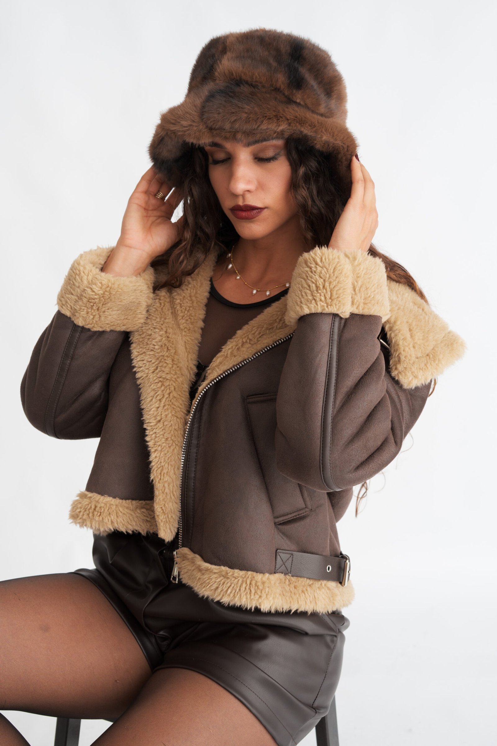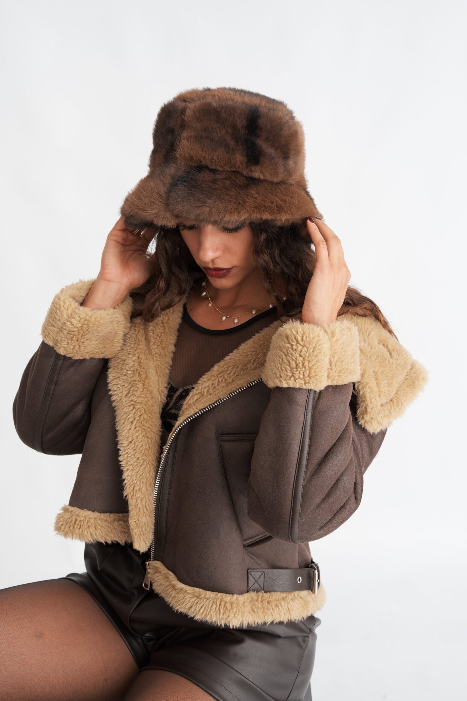 Το Pluffy Hat είναι ένα ζεστό και κομψό γούνινο καπέλο, ιδανικό για να προσθέσει στυλ και άνεση στις χειμερινές εμφανίσεις. Το μαλακό και πλούσιο ύφασμά του προσφέρει ζεστασιά, ενώ η luxurious υφή δημιουργεί μια fashionable και cozy αίσθηση.